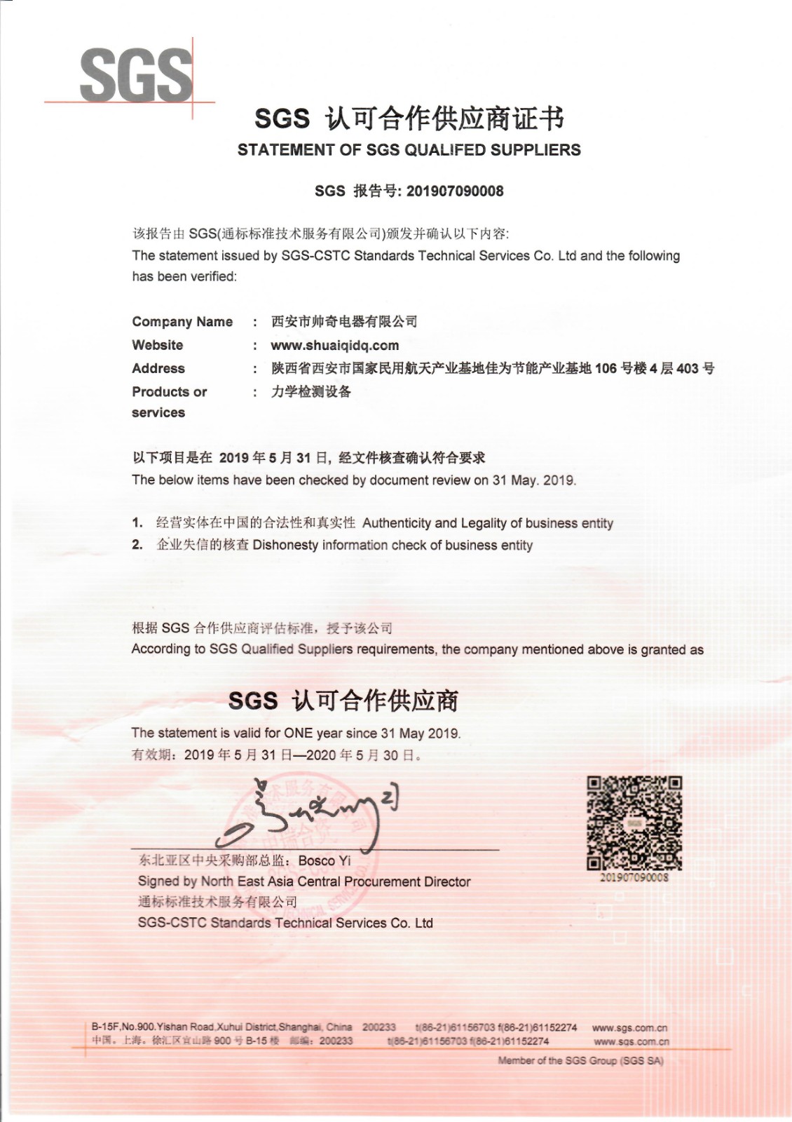 認(rèn)可供應(yīng)商證書